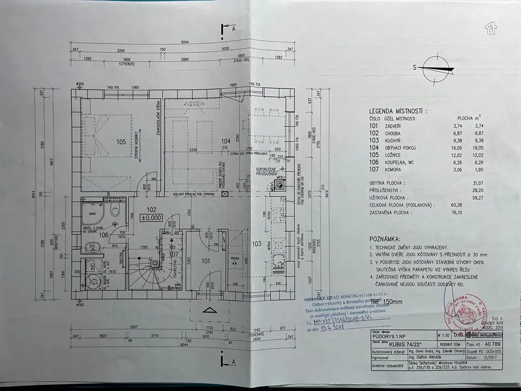 V přízemí se nachází prostorný obývací pokoj propojený s kuchyňským koutem, ložnice, koupelna se sprchovým koutem a vstupní hala. V patře naleznete tři samostatné pokoje, toaletu a koupelnu s vanou.