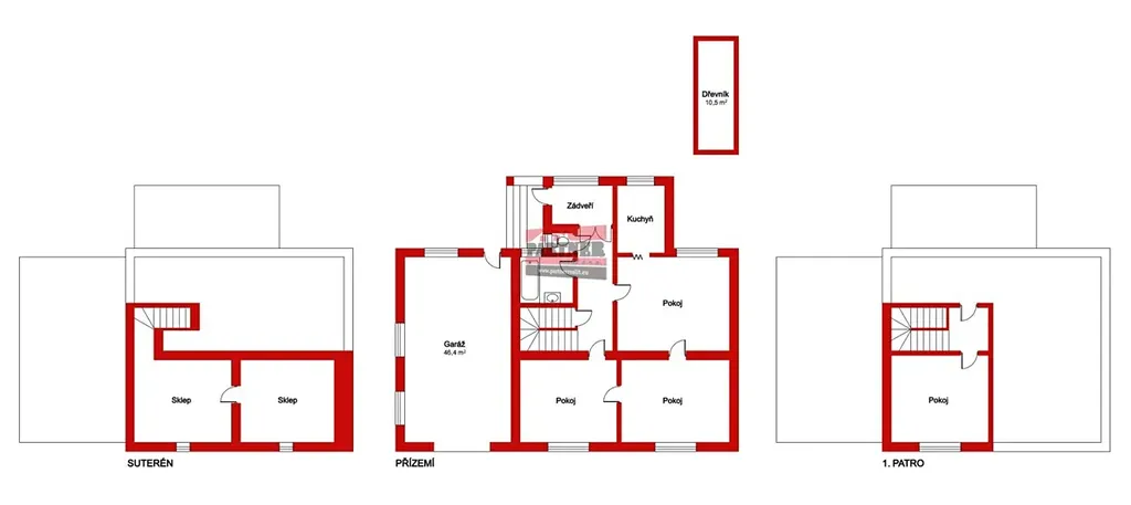 Dům je částečně podsklepený (dvě sklepní místnosti).
