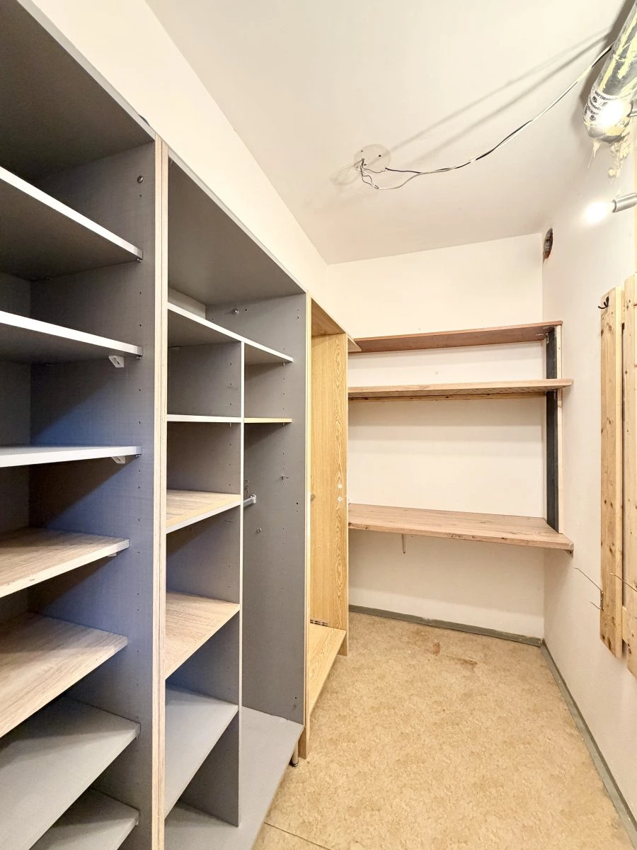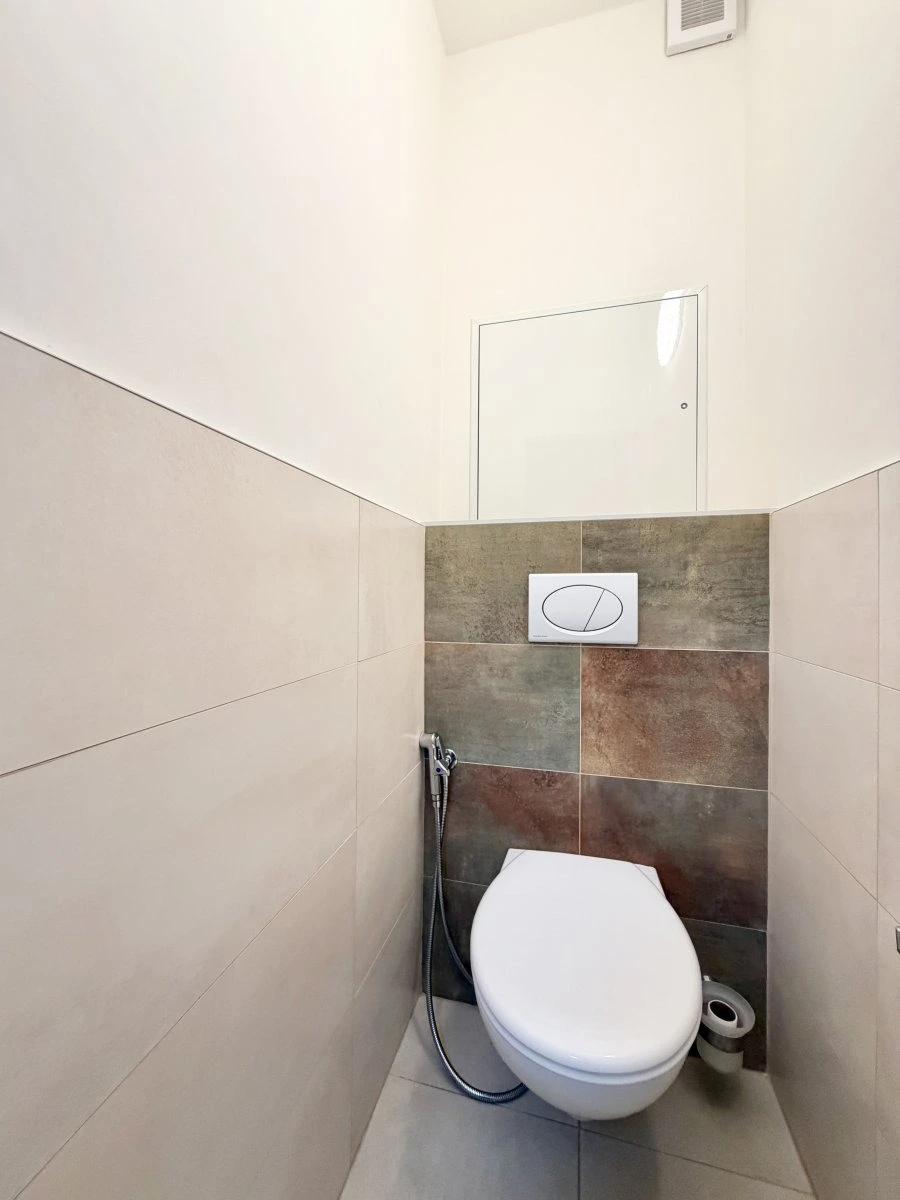 Byt se nabízí plně vybavený. Kuchyně disponuje lednicí, myčkou, elektrickou troubou, varnou deskou a digestoří. Obývací část je zařízena pohovkou, jídelním stolem a židlemi. Součástí ložnice je postel a další místnost jako šatna. V koupelně je sprchový kout, umyvadlo, pračka a topný žebříček. Toaleta je umístěna samostatně. V bytě se nachází také prostorná komora.