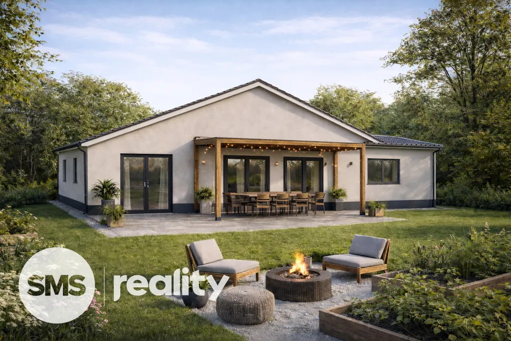 Součástí projektu může být také zahradní domek o ploše cca 9,45 m², vhodný pro uskladnění zahradní techniky, kol nebo nářadí. Výstavba zahradního domku je volitelná – nový majitel se může rozhodnout, zda jej chce realizovat, nebo ponechat více prostoru na zahradě.