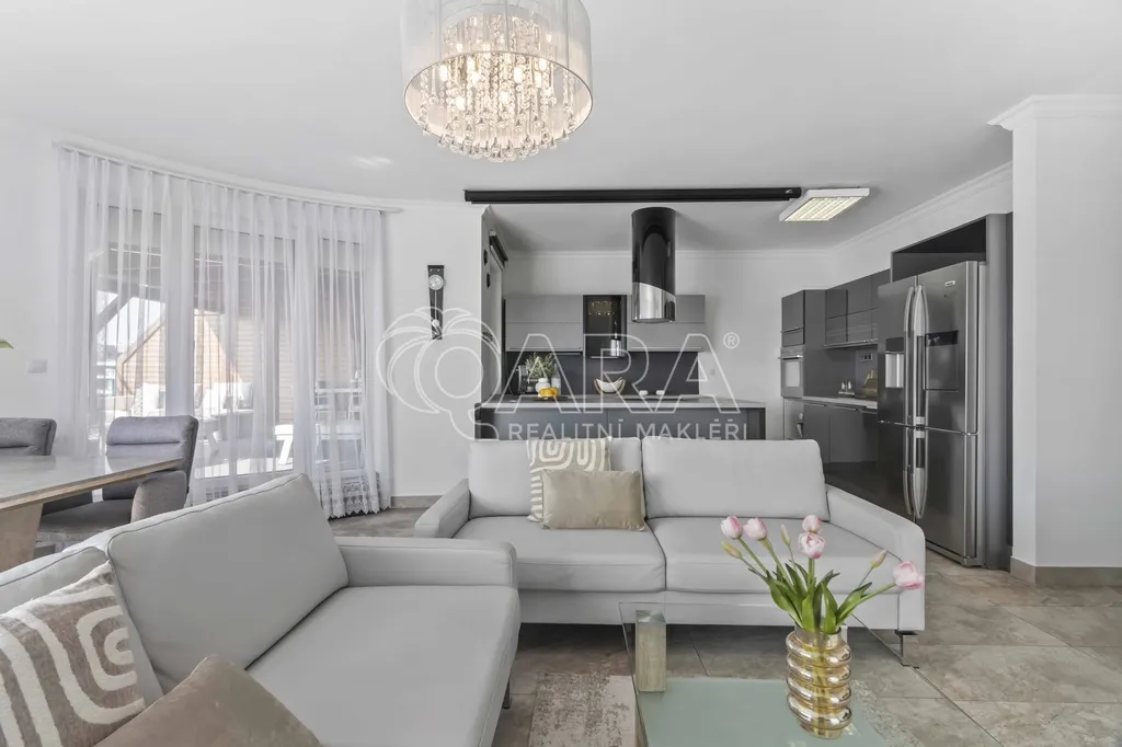Součástí je také: garážové stání v domě a sklep přímo u něj.