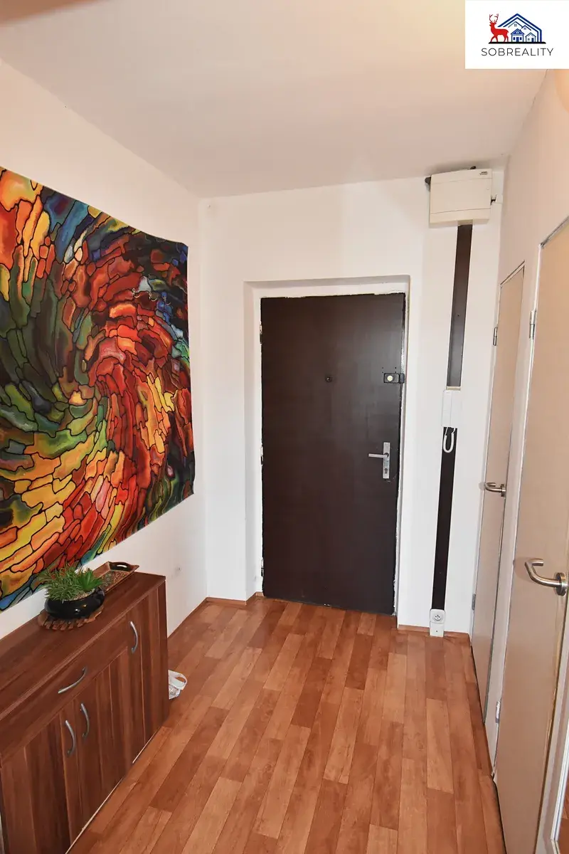 Byt se skládá z obývacího pokoje cca 20 m2, lodžie cca 6 m2, kuchyňského koutu cca 5,5 m2, předsíně cca 4 m2, koupelny cca 2 m2 a toalety cca 1 m2. Dům prošel revitalizaci, zateplení fasády, plastová okna atd.