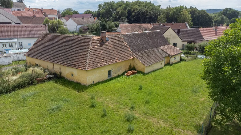 Hlavní obytná část: Prostorný dům s výraznou žlutou fasádou, orientovaný na jihovýchod, což zajišťuje dostatek slunečního svitu. Dům nabízí vstupní verandu o velikosti 6 m², kuchyni o velikosti 14 m² a tři prostorné pokoje o rozměrech 25 m², 22 m² a 20 m², které poskytují dostatek místa pro rodinné bydlení. Dále je zde koupelna 6 m2 s vanou a samostatné WC. Dům disponuje také sklepem o velikosti 2,5 m² se vstupem přímo z kuchyně, ideálním pro uskladnění potravin či zeleniny. Důležitou výhodou jsou již vyměněná nová plastová okna, která zajišťují lepší izolaci a snižují náklady na budoucí rekonstrukci. Dům je jinak určen k celkové rekonstrukci interiéru a rozvodů, což vám umožní vytvořit si domov přesně podle vašich snů a potřeb.