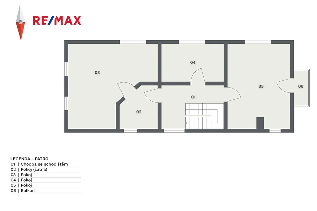 - přízemí: dva pokoje, kuchyně, chodba, schodiště do patra, vstup do sklepa, uzavřená veranda.