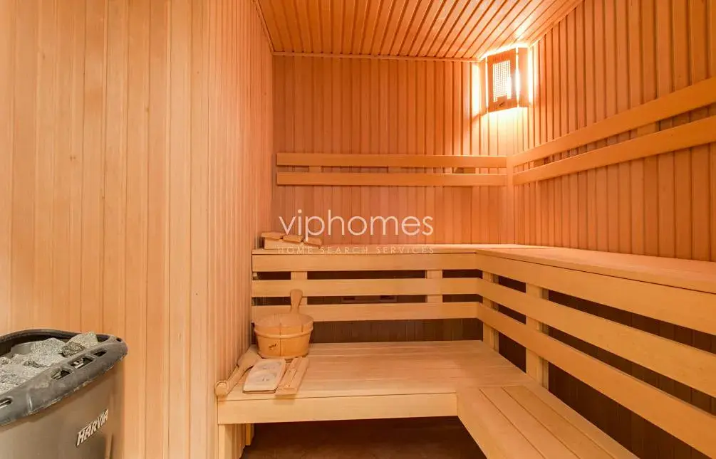 Prostorná vila sestává ze 7 ložnic a 5 koupelen. Společenské přízemí vily nabízí centrální halu, obývací pokoj se zimní zahradou, plně vybavenou kuchyň s jídelnou a terasou, pracovnu, šatnu, koupelnu a technické zázemí. V prvním patře je hlavní ložnice s plně vybavenou koupelnou a velkou šatnou, další 2 ložnice s koupelnou, kuchyň, terasa a menší zimní zahrada. Ve druhém patře jsou tři podkrovní ložnice, dvě koupelny, kuchyňka. Relaxační zázemí tvoří bazén, sauna, koupelna, tělocvična, herna, vinotéka umístěny v suterénu vily. Prádelna, technické zázemí, skladové místnosti, úložné prostory, plynové kotle, v suterénu, stejně jako vstup do zahrady.