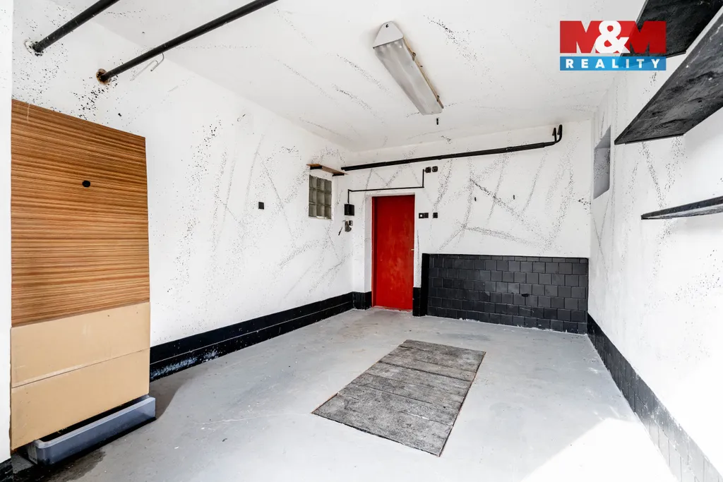 Součástí prodeje je i garáž, která se nachází přímo v domě. K bytu také náleží větší zděný sklep.