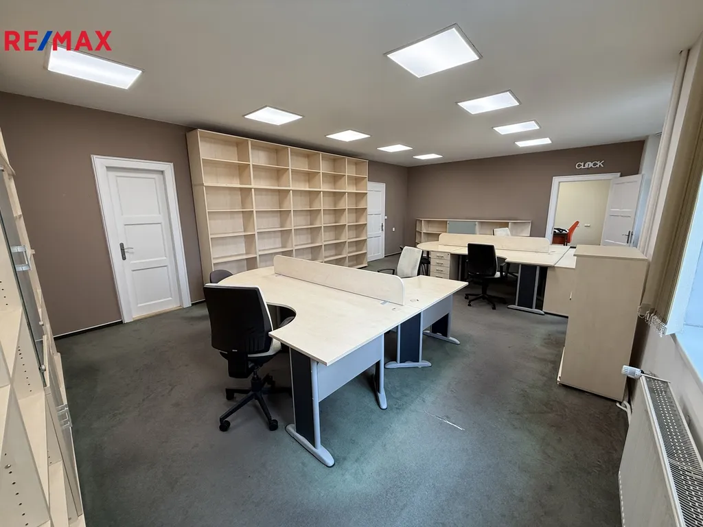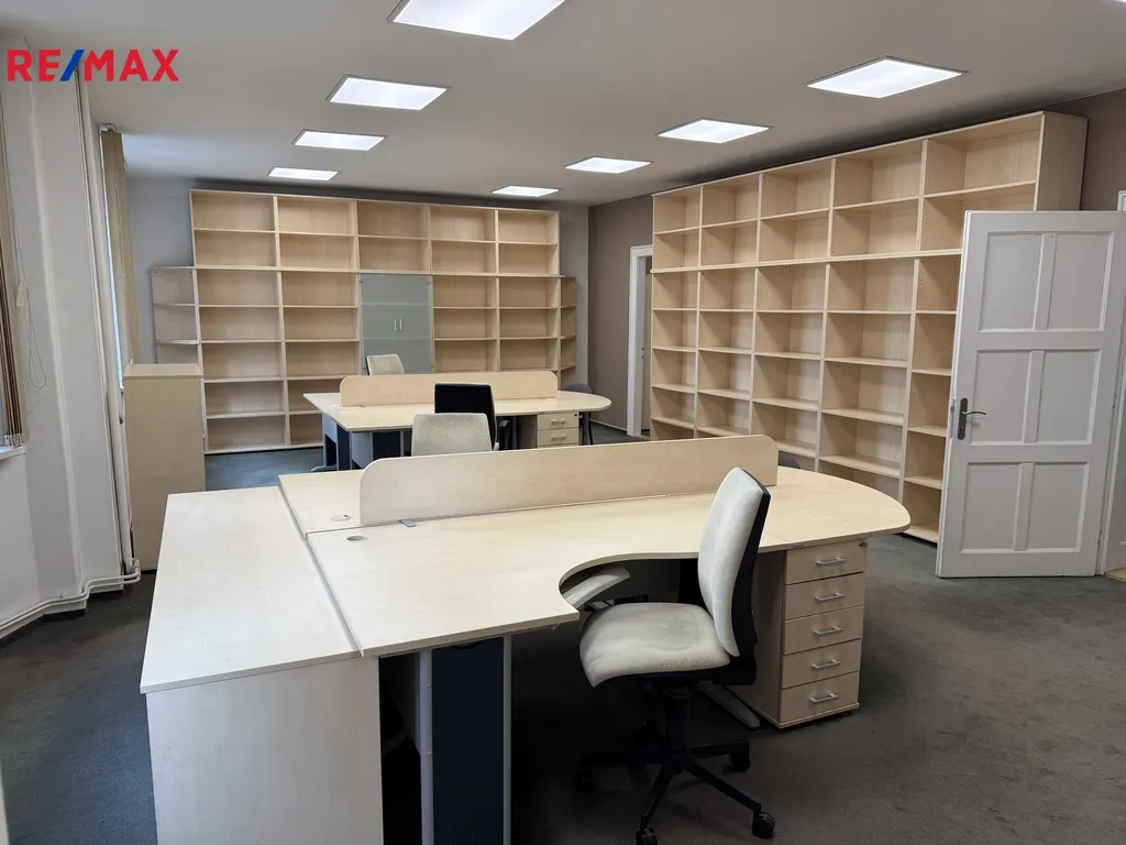 Kancelář má dva samostatné vchody, přes vstupní dveře z hlavní chodby, což nabízí možnost rozdělení prostor na dvě ideální poloviny.