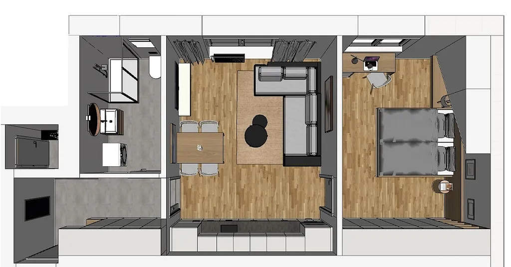 Nabízíme k pronájmu podkrovní byt s dispozicí 2+KK o ploše 46,7 m² ve 4. NP