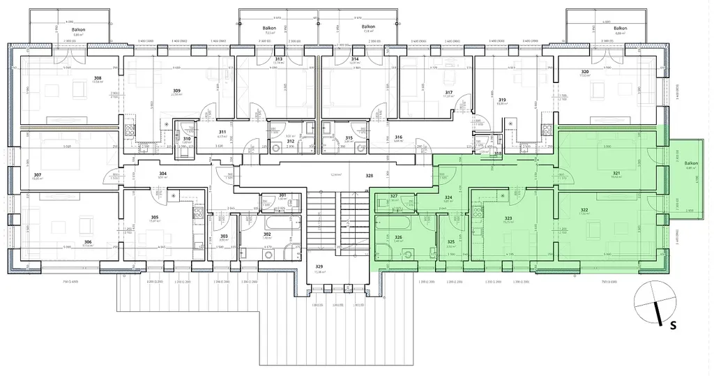 Jednotka se skládá ze vstupní chodby, koupelny, samostatného WC, šatny prostorné kuchyně a dvou samostatných pokojů s výstupem na balkon. K bytu náleží komora – sklep o ploše 2 m?.