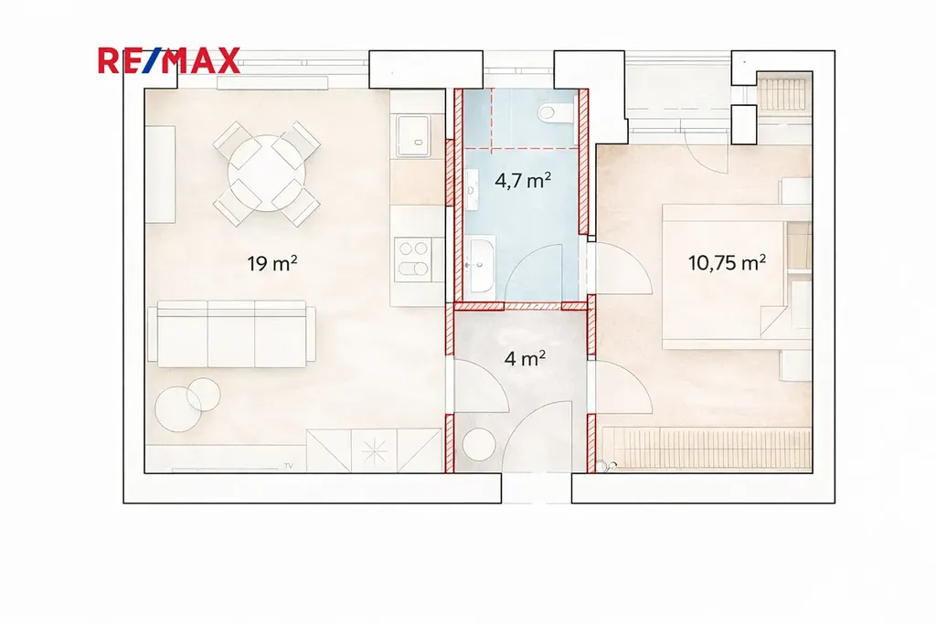 Byt je v původním stavu určeném k rekonstrukci, což novému majiteli umožňuje vytvořit moderní bydlení přesně podle vlastních představ. Díky dispozici nabízí také zajímavý potenciál úpravy na byt 2+kk. Součástí prodeje je i vypracovaný projekt od Ing. Arch. Barbory Málkové se změnou dispozice na 2+kk.