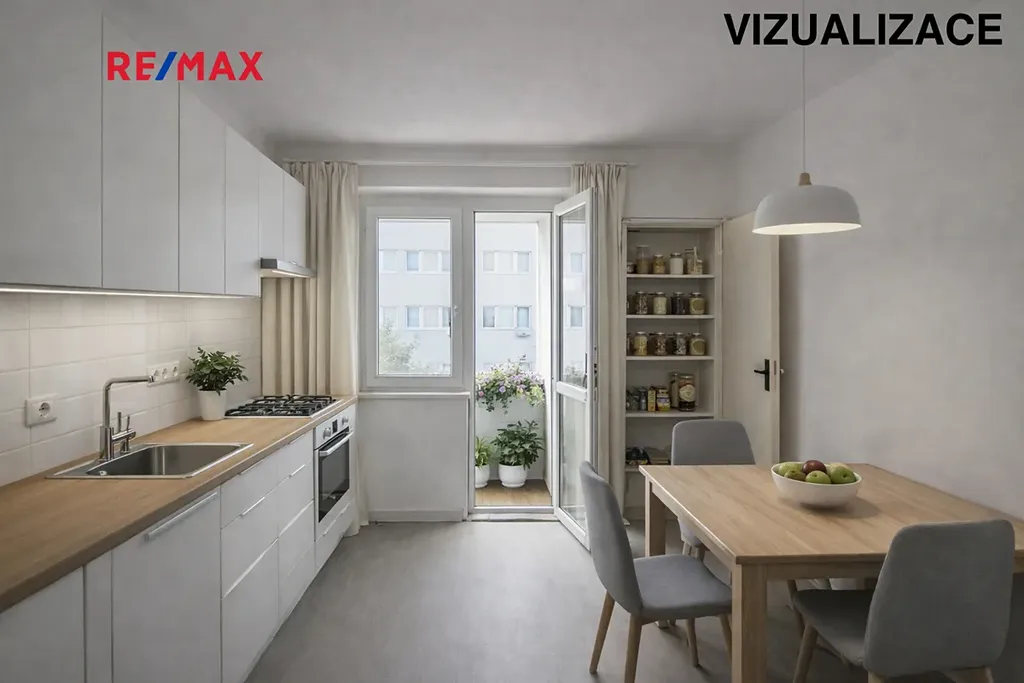 Díky velikosti hlavního pokoje a samostatné kuchyni nabízí byt možnost moderní rekonstrukce například na dispozici 2+kk, kdy může vzniknout samostatná ložnice a obytný prostor s kuchyňským koutem.