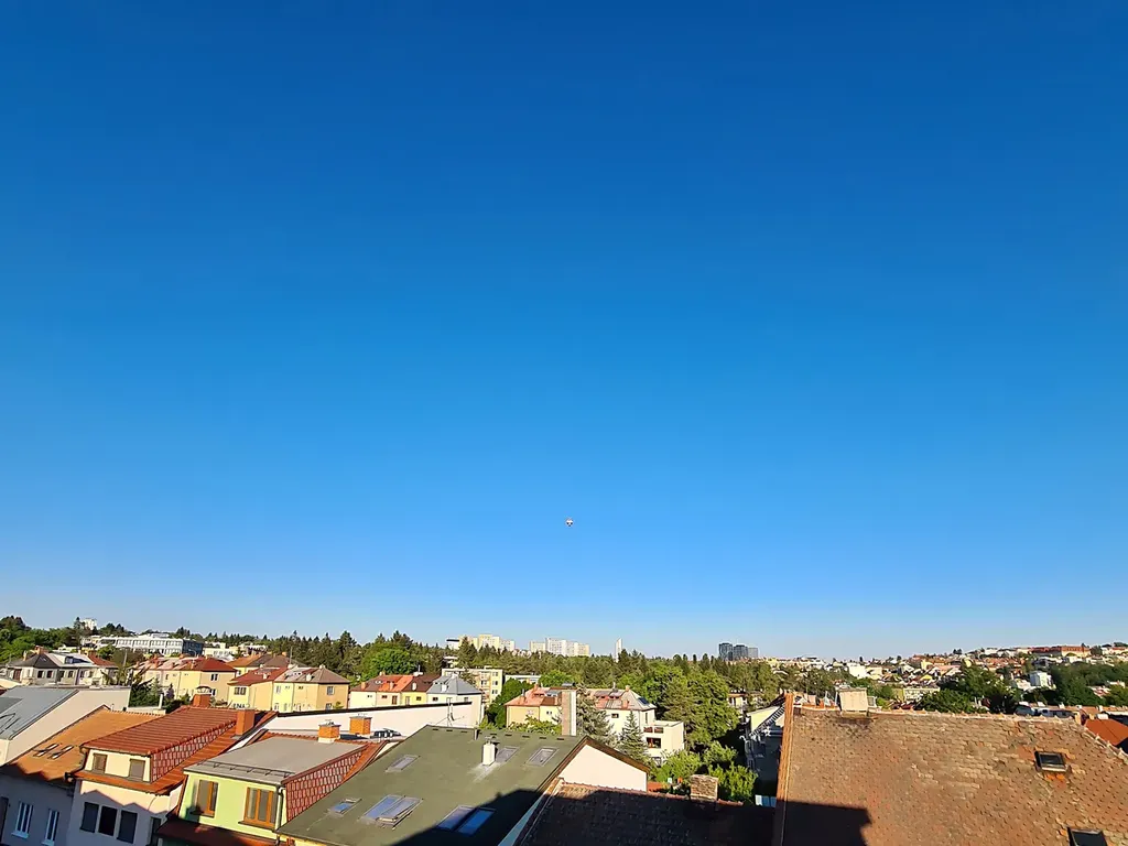 Co je velkou předností bytu, je panoramatický výhled na celé Žabovřesky a Wilsonův les. Užívat si jej můžete z kteréhokoliv okna bytu, stejně jako z terasy velké 5 m², kde najdete posezení. Terasa i celý byt jsou orientované na východ, takže je tu po celý den velmi příjemně.