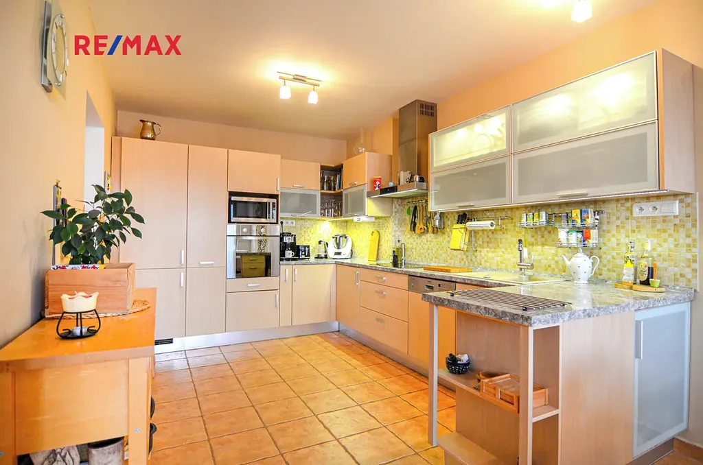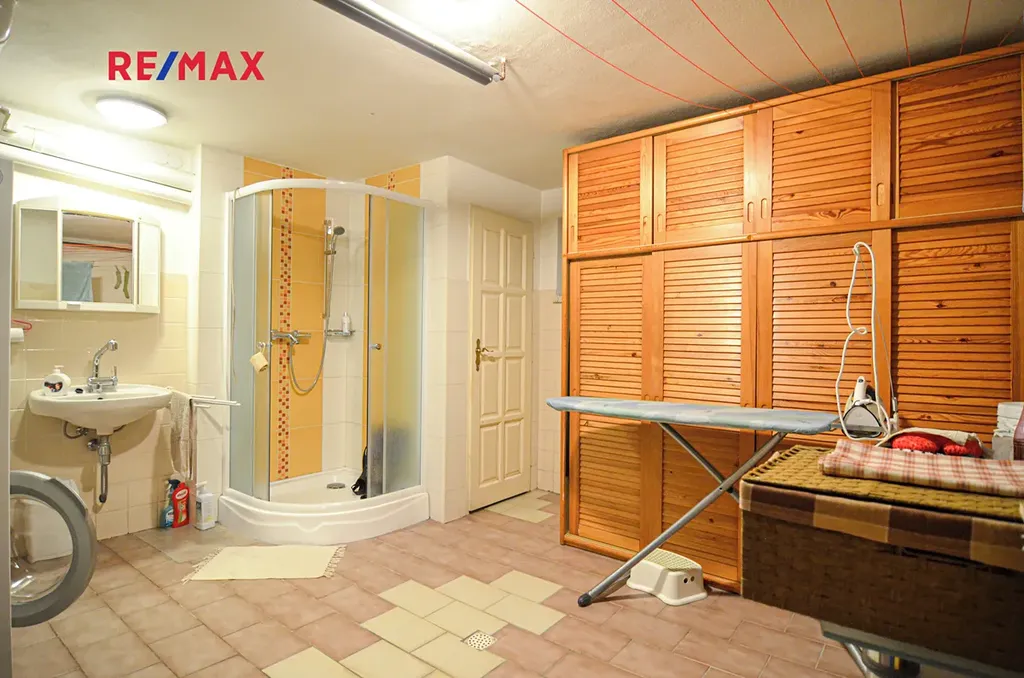 Suterén: kotelna s prádelnou a sprchovým koutem, samostatné WC, velký pokoj – ideální pro hosty, hobby či domácí fitness, 2 sklepy se vstupem na zahradu.