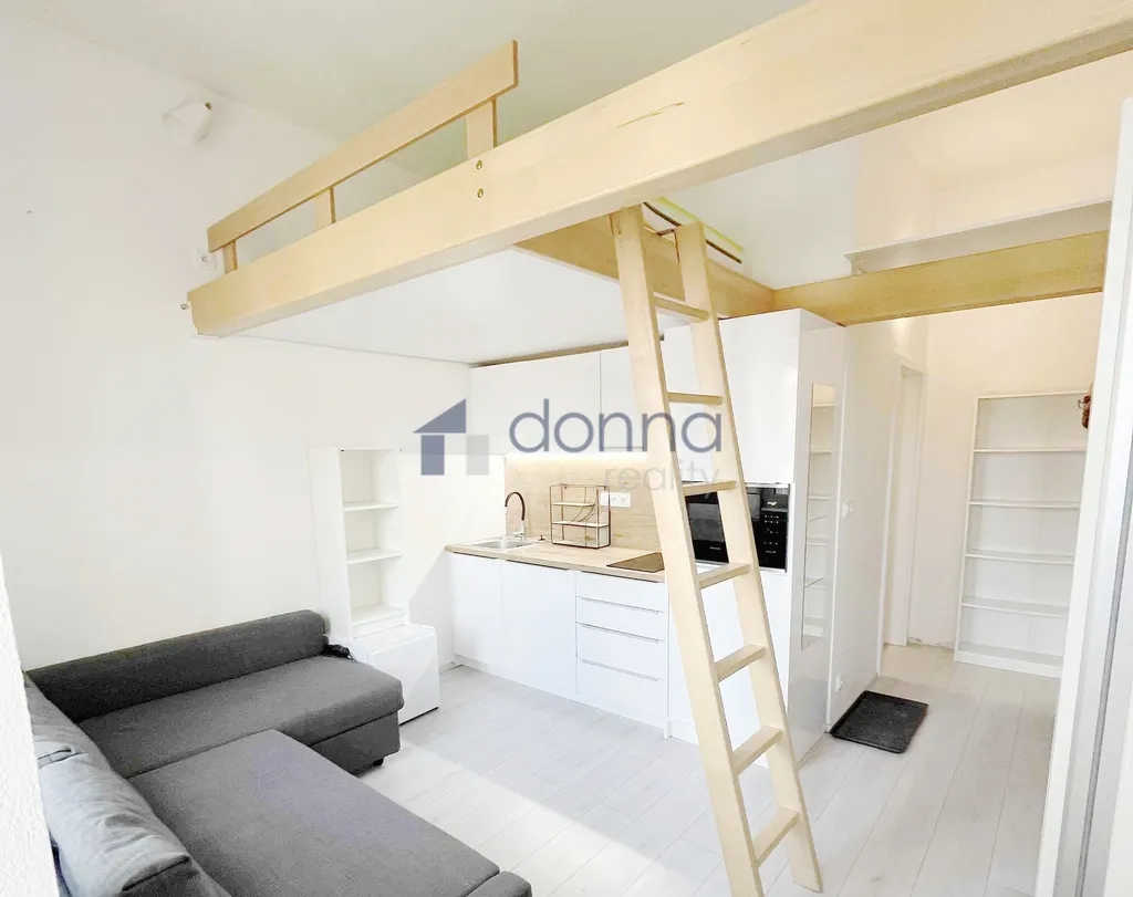 Nabízíme pronájem pěkného, zařízeného bytu 1+kk, o ploše 20m2 (+ 5m2 patro na spaní), v 1. patře panelového domu bez výtahu, ulice Hejtmánkova, Praha 8 - Libeň.
