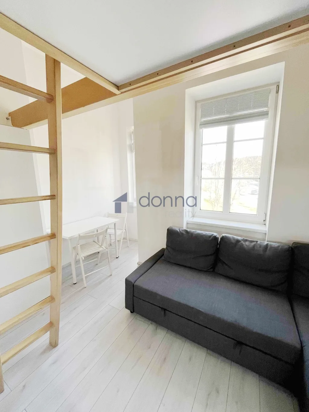 Vybavení: kuchyňská linka s vestavěnými spotřebiči (varná deska, lednice, mikrovlnná trouba, sedací souprava, stůl, židle, skříň, patro na spaní + matrace, prostorná světlá koupelna s oknem a sprchovým koutem, pračkou a toaletou.