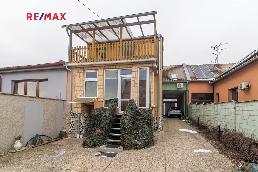 Dům nabízí celkem 5 místností, 2 koupelny (jedna s vanou, druhá se sprchovým koutem), 2 WC, prostornou vstupní halu, zimní zahradu orientovanou do dvora a velkou terasu s krásným výhledem. Je také částečně podsklepený (dostatek úložného prostoru).