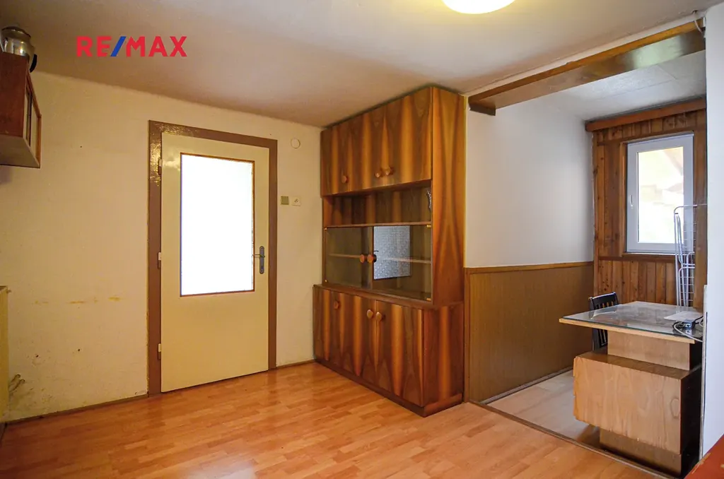 Dům je rozdělen na dvě části - novější 2+1 s koupelnou a toaletou , pracovnou a druhá část "výminek", v této části jsou další prostory k rozšíření bydlení.