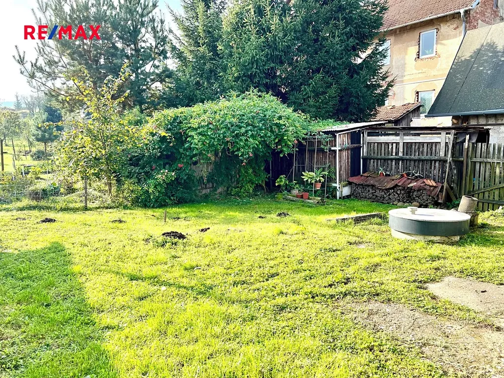 Za domem se nachází hospodářský přístřešek, o který je možné rozšířit obytnou plochu, dále dřevník.