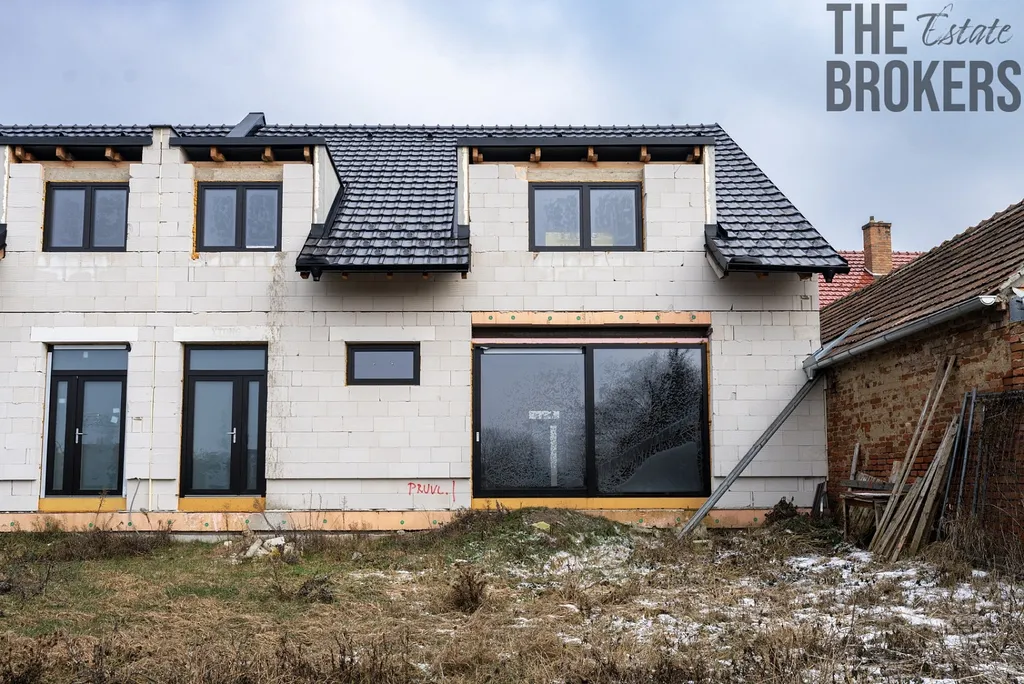 Představujeme Vám moderní rodinný dům 5 + kk s garáží a velkou zahradou. Jedná se o novostavbu ve fázi dokončování – v této chvíli jsou hotové obvodové zdi, střešní konstrukce, plastová okna a vstupní dveře; interiéry a finální povrchy čekají na dokončení dle představ budoucího majitele. Nemovitost se nachází v tiché části obce Mikulčice na jihu Moravy, jen 7 km od Hodonína.