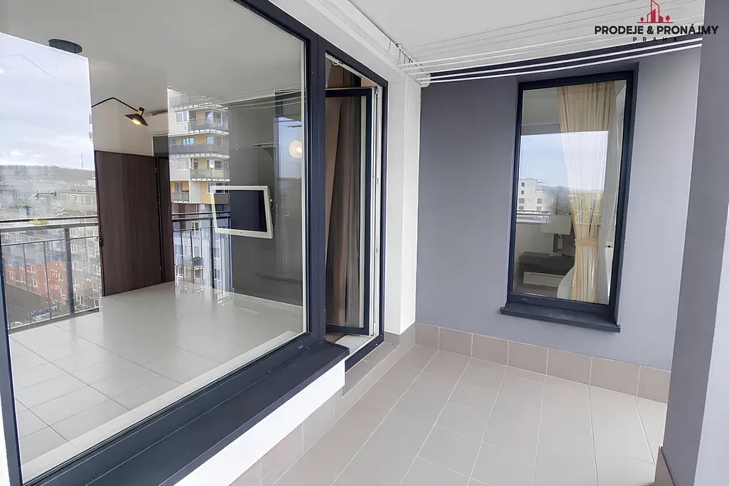 Nabízíme ke dlouhodobému pronajmu plně zařízený, byt dispozici 2kk s balkonem 47,7+7,3m² na 9. patře novostavby s výtahem.