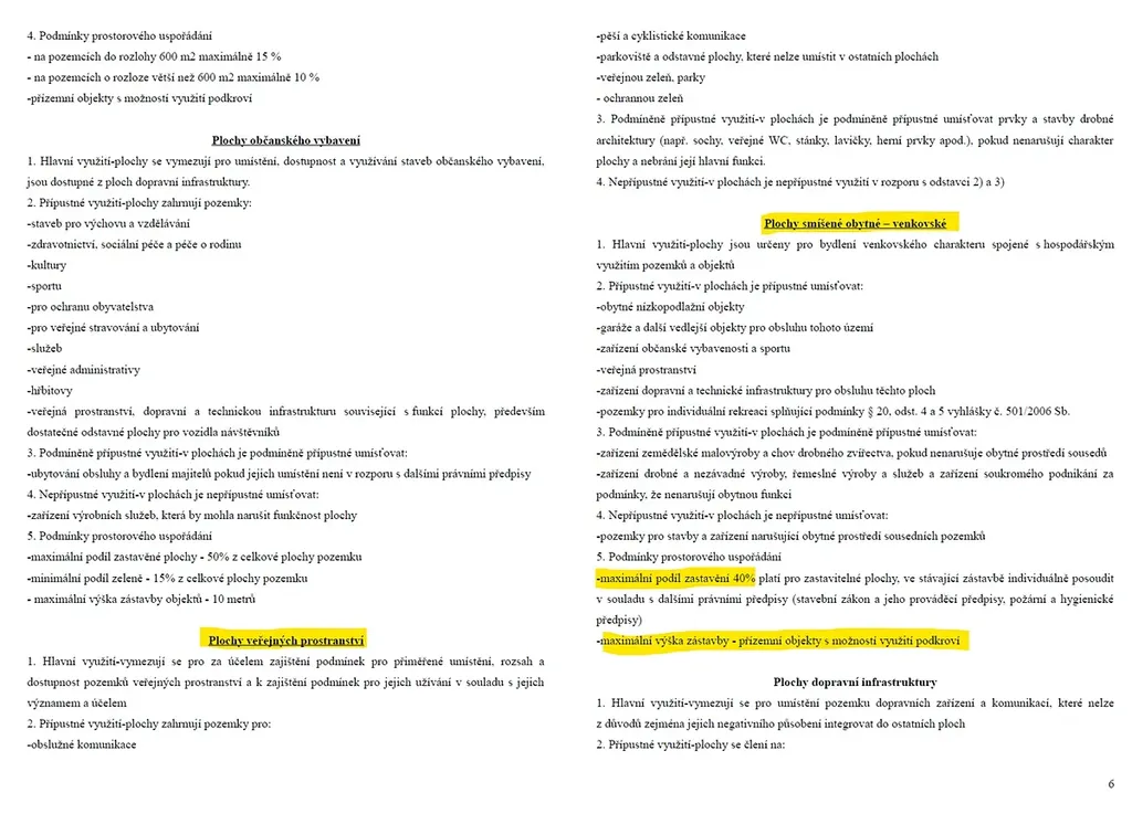 Pozemky č. 520/81 a 520/70 v k.ú. Trhanov jsou územním plánem Trhanov, ve znění změny č. 1 a 2, zařazeny do zastavitelné plochy č. 8 – smíšené obytné. Možnosti využití těchto pozemků dle ÚP posílám v příloze. K tomu jen doplním, že minimální výměra pozemků není stanovena a zastavěnost 40% znamená podíl všech ploch zastavěných stavbami vyžadujícími stavební povolení nebo ohlášení na pozemku k celkové ploše pozemku vyjádřený v procentech, zastavěnou plochou se rozumí průmět všech částí stavby do půdorysné roviny.