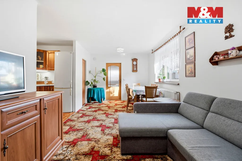 Vstup do domu vede přes verandu do chodby, odkud je přístup do kuchyně propojené s obývacím pokojem, se spíží a navazujícím pokojem, a dále do dvou samostatných pokojů. Dům disponuje dvěma koupelnami, přičemž v jedné z nich je umístěn plynový kotel. Z chodby vede schodiště na prostornou půdu s dalším potenciálem využití.
