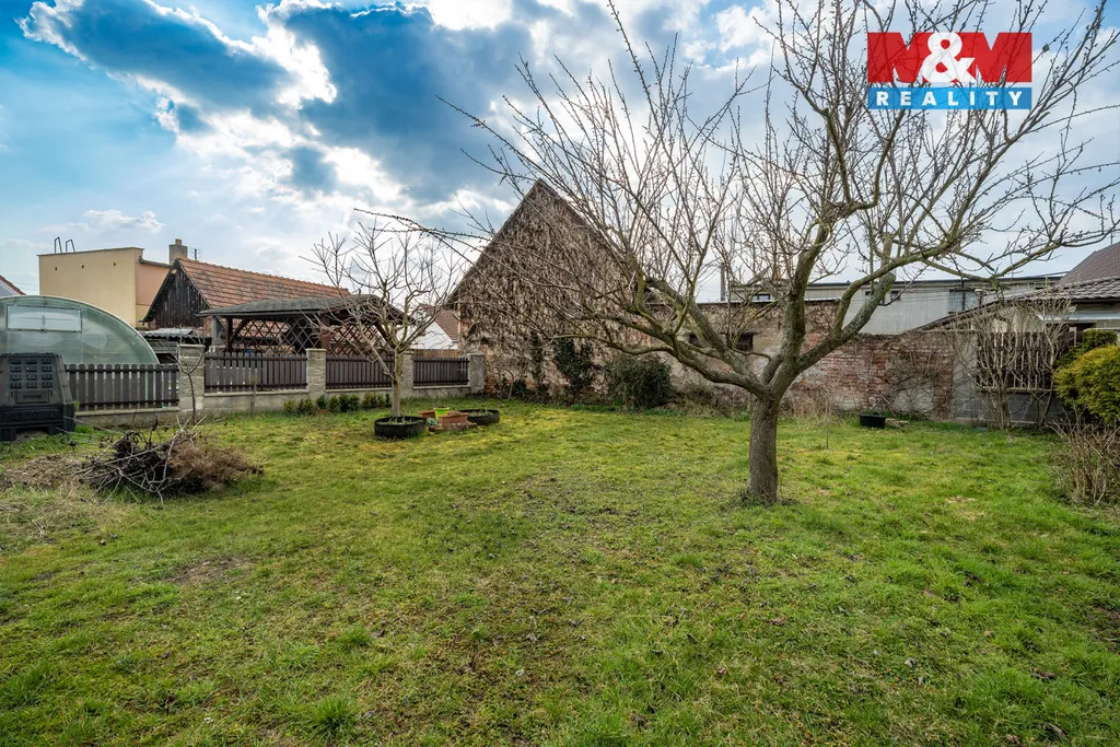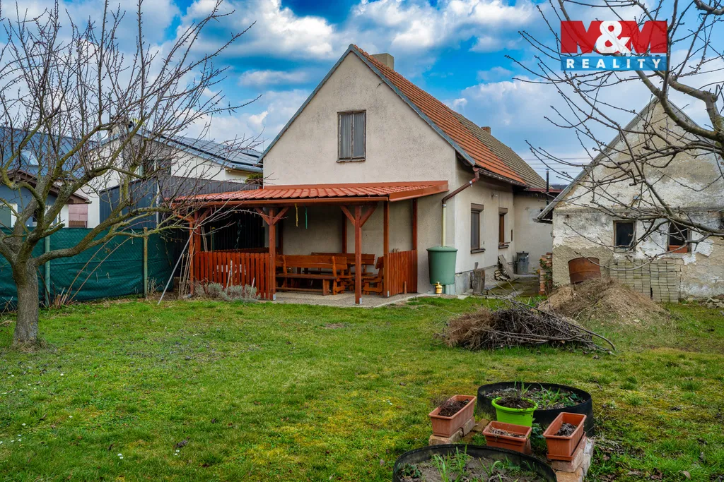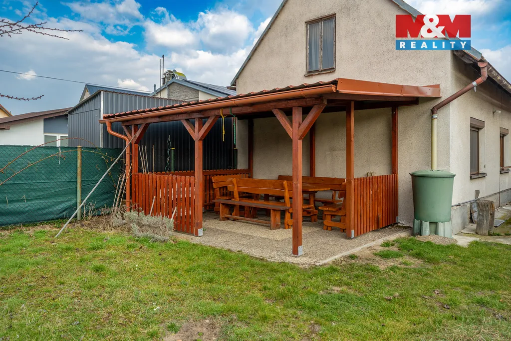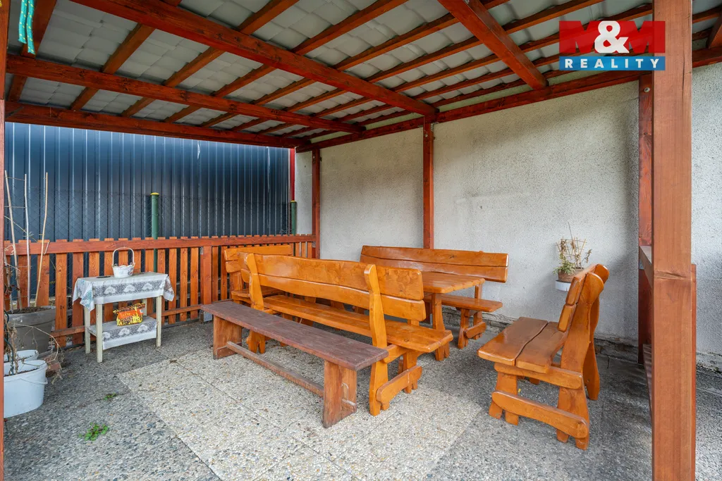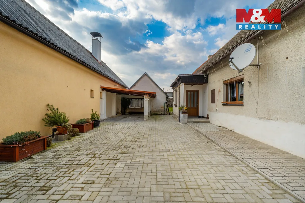 Uzavřený dvůr se zámkovou dlažbou nabízí parkování pro dvě auta, z toho jedno ve zastřešeném stání. Součástí je také dílna s dostatkem úložného prostoru. Na dvůr navazuje rovinatá zahrada se zastřešenou pergolou pro příjemné posezení.