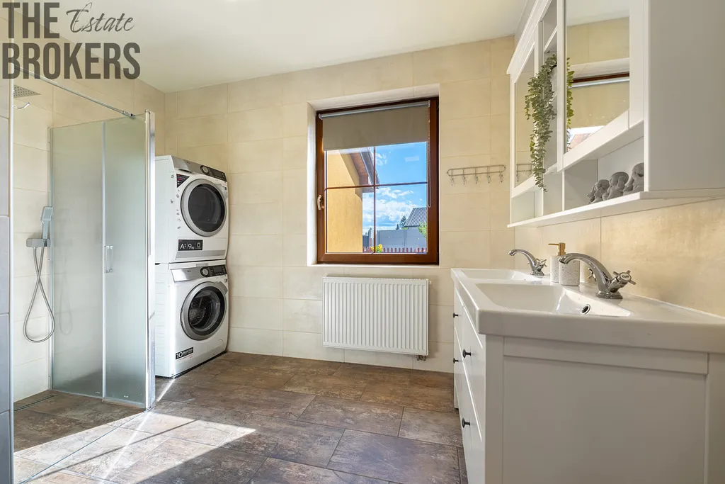 - Moderní technologie: Vedle klimatizace je v domě instalován změkčovač vody na sůl, což zaručuje čistou a měkkou vodu pro každodenní potřeby.