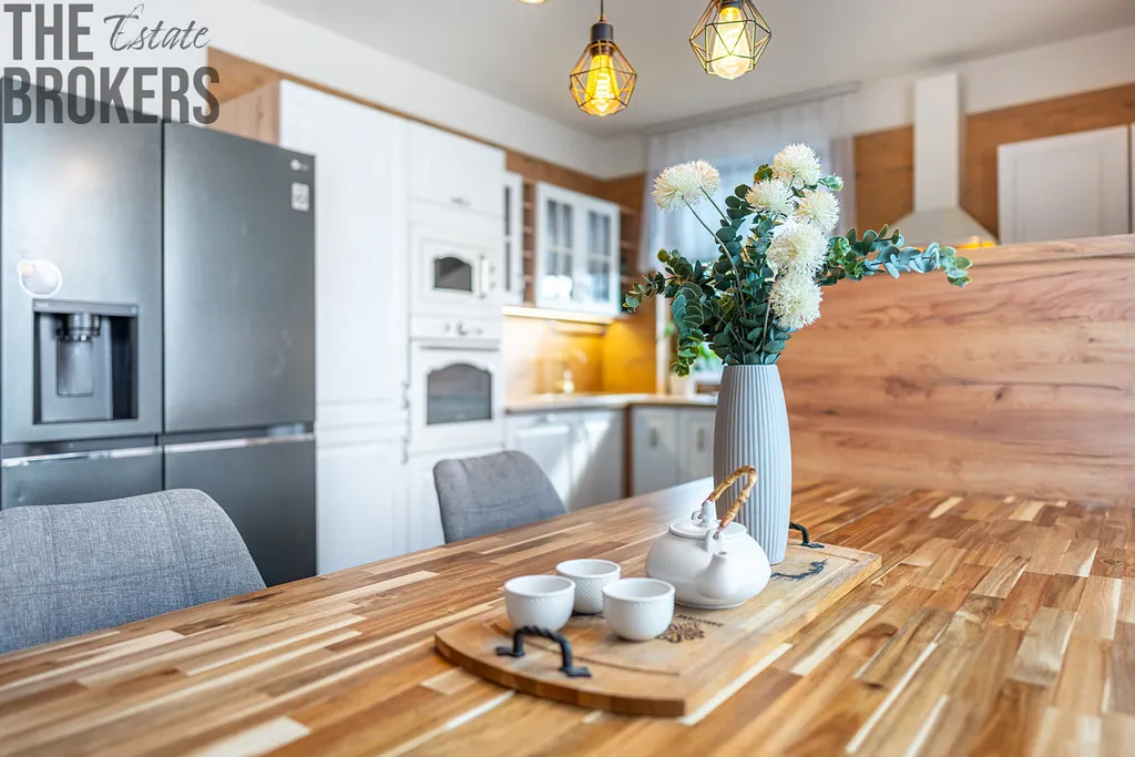 - Velkorysý prostor pro rodinu: Dispozice 6+kk zajišťuje pohodlné bydlení i početnější rodině, případně nabízí možnost oddělení na dvougenerační bydlení.
