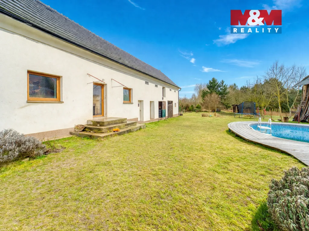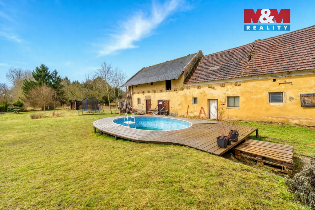 Dům s vlastním kusem přírody a zahradou až k řece – klidné bydlení nedaleko Plzně. Nabízíme k prodeji zrekonstruovaný rodinný dům o dispozici 4+1 ve Vodním Újezdu u Dobřan, situovaný na výjimečném pozemku o rozloze 5 355 m² sahajícím až k řece a poskytujícím soukromí i přímý kontakt s okolní přírodou. Nemovitost spojuje komfort moderního bydlení s atmosférou venkova – od uzavřeného dvora s pergolou pro příjemné posezení, bazénem až po rozlehlou zahradu ideální pro relaxaci, pěstování, chov zvířat či volnočasové aktivity. Součástí je také prostorná stodola v původním stavu s potenciálem pro dílnu, ateliér nebo další využití. Dům je napojen na vlastní studnu, vytápění zajišťují krbová kamna doplněná elektrickým kotlem. V Dobřanech se nachází základní škola i mateřská škola (cca 5 minut jízdy) a nájezd na dálnici D5 je dostupný přibližně do 10 minut autem směrem na Plzeň. Lokalita nabízí klidné bydlení v zeleni s výbornou dostupností města a kompletní občanskou vybaveností v dosahu.