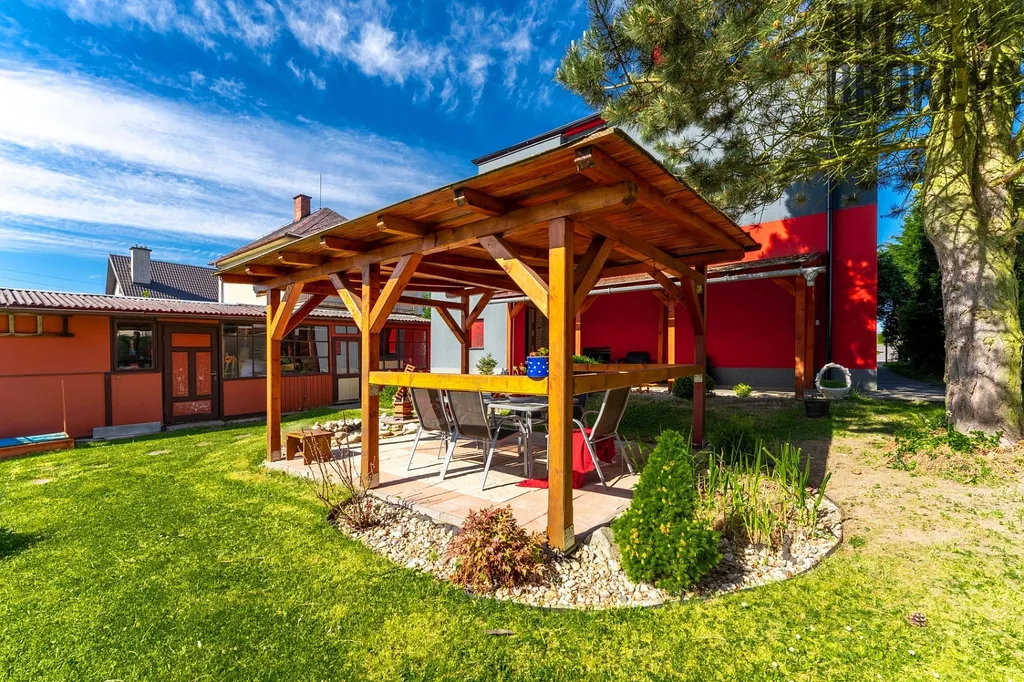K domu náleží parcela o celkové výměře 819 m², která slouží jako zahrada a nabízí dostatek prostoru pro relaxaci, dětské hry i rodinné grilování. Součástí je pergola a zahradní domek pro praktické využití.