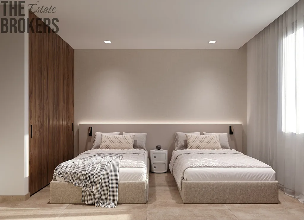 První patro: Zahrnuje dvě elegantní ložnice, každá s přímým přístupem na soukromou terasu.