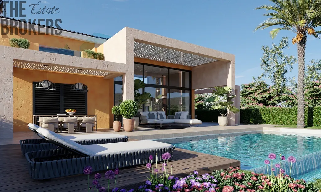 Přízemí: Zahrnuje obývací prostor v otevřeném plánu, který je spojen s jídelní částí a moderní kuchyní. Dále prostornou dvoulůžkovou ložnici s koupelnou en-suite a soukromou terasu. Velké posuvné dveře propojují vnitřní prostor s rozlehlou terasou a upravenou zahradou.