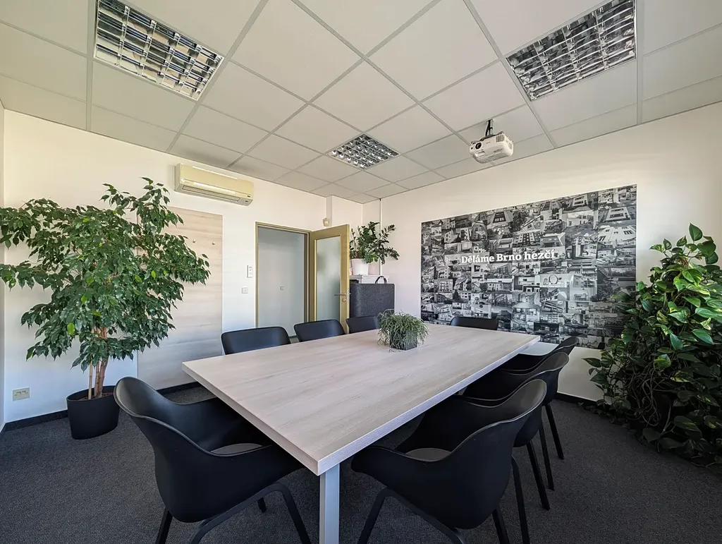 Interiér je řešen v moderním, čistém stylu s důrazem na funkčnost a estetiku. Samozřejmostí je klimatizace, která přispívá k příjemnému pracovnímu prostředí po celý rok.