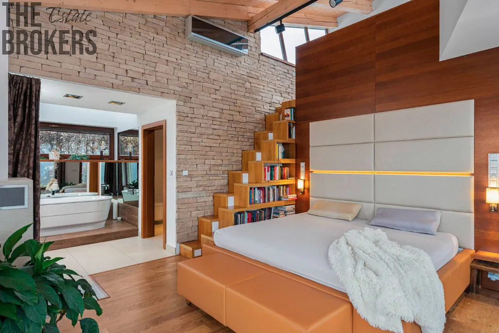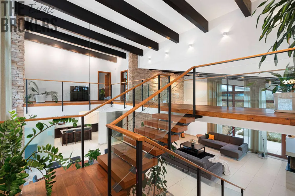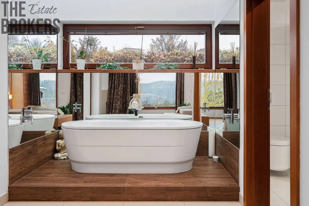 Dům má 6 koupelen, dětskou hernu, pracovnu, malý byt se samostatným vchodem nebo fitness a vinný sklípek. K odpočinku využijete venkovní bazén se slanou vodou a vybudovat zde můžete i saunu.
