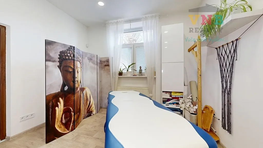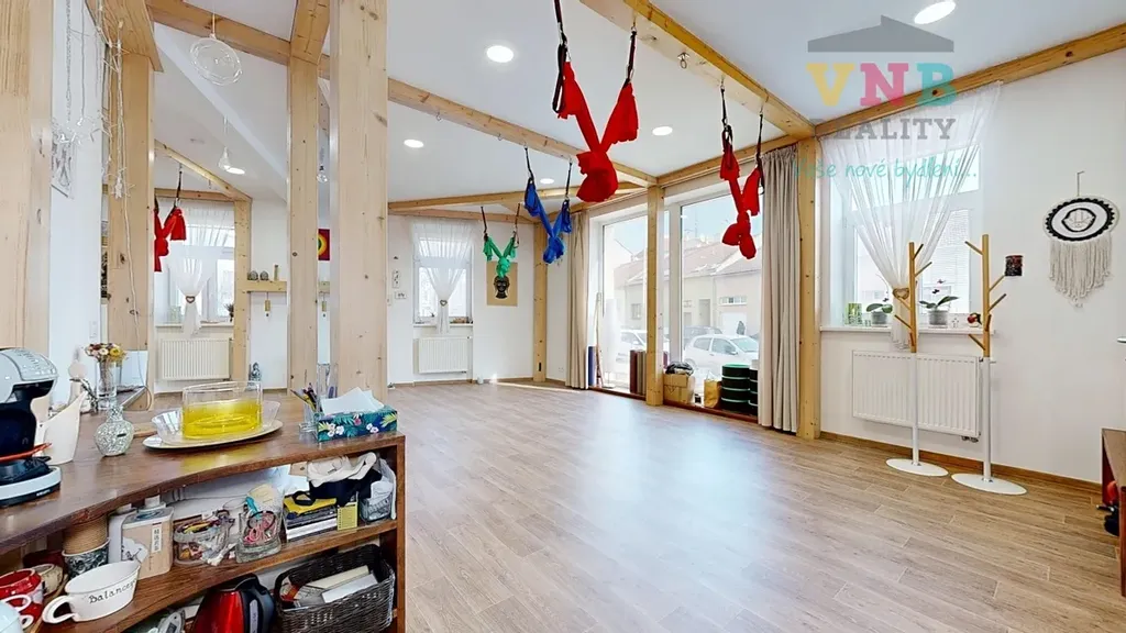 Součástí domu je samostatný prostor s vlastním vstupem z ulice, aktuálně využívaný jako zavedené jógové studio. Prostor má vlastní sociální zázemí .Jógové studio se stabilní klientelou a vybudovanou značkou – ideální příležitost pro investora nebo provozovatele, který chce okamžitě pokračovat bez nutnosti dalších investic.