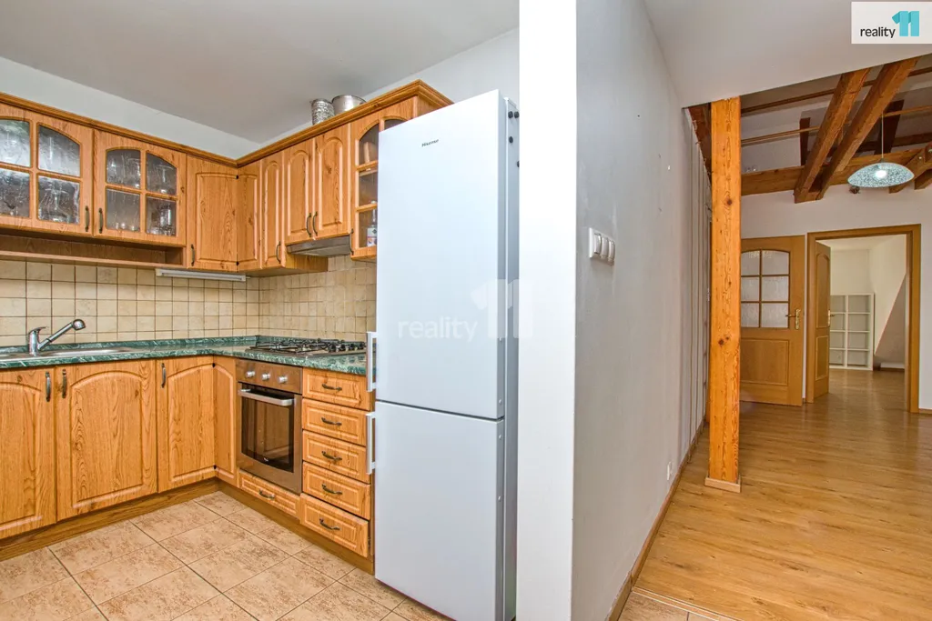 prostor po rozsáhlé rekonstrukci před cca 15 lety. V samotném bytě v posledním patře bez výtahu kuchyňská linka, podlahy laminátové, koupelna s