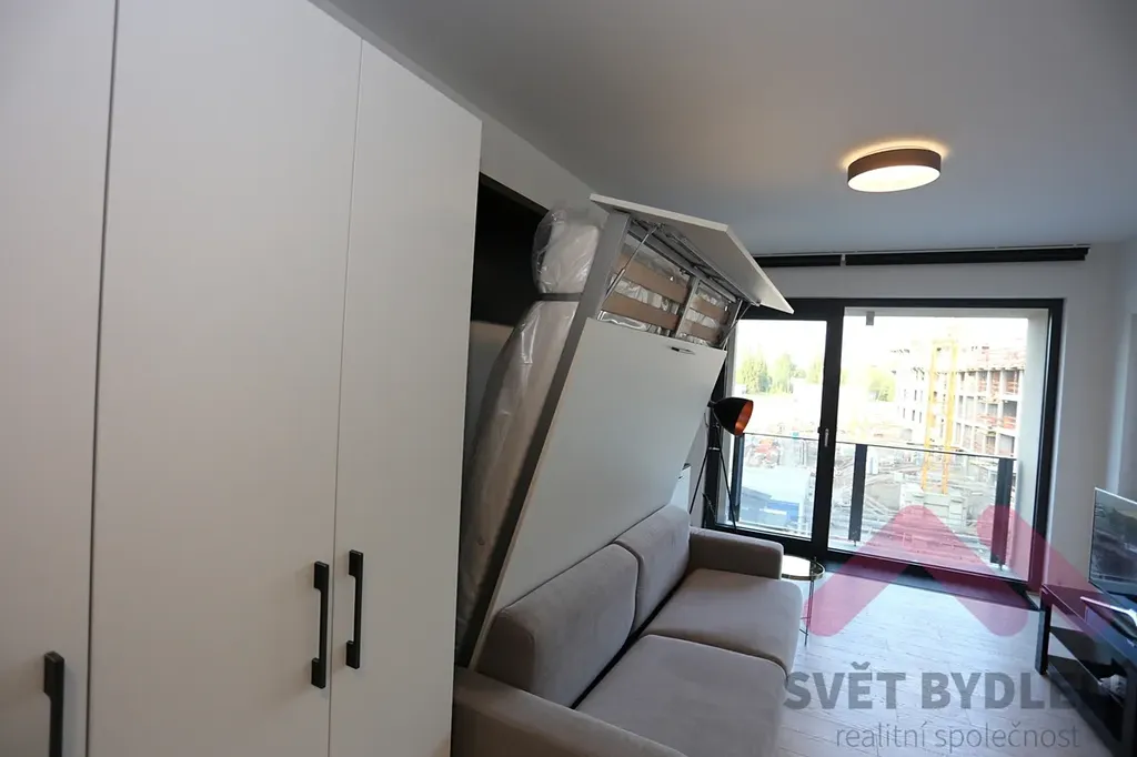 Velice světlý byt (orientace na východ) se nachází v 4.patře s výtahem novostavby, která je provedena ve vysokém standartu v lukrativní nové části Karlína přímo u metra Křižíkova. Byt je kompletně vybaven moderním nábytkem včetně televize (viz. foto) dále je k dispozici kuchyňská linka s vestavěnými spotřebiči (lednička, myčka, sporák, pračka) a praktická šatna s policovým systémem . K bytu náleží sklepní kóje, která je umístěna v suterénu domu.
