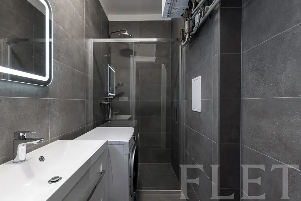 Zázemí: Moderní koupelna se sprchovým koutem a pračkou, toaleta je pro maximální komfort oddělená.
