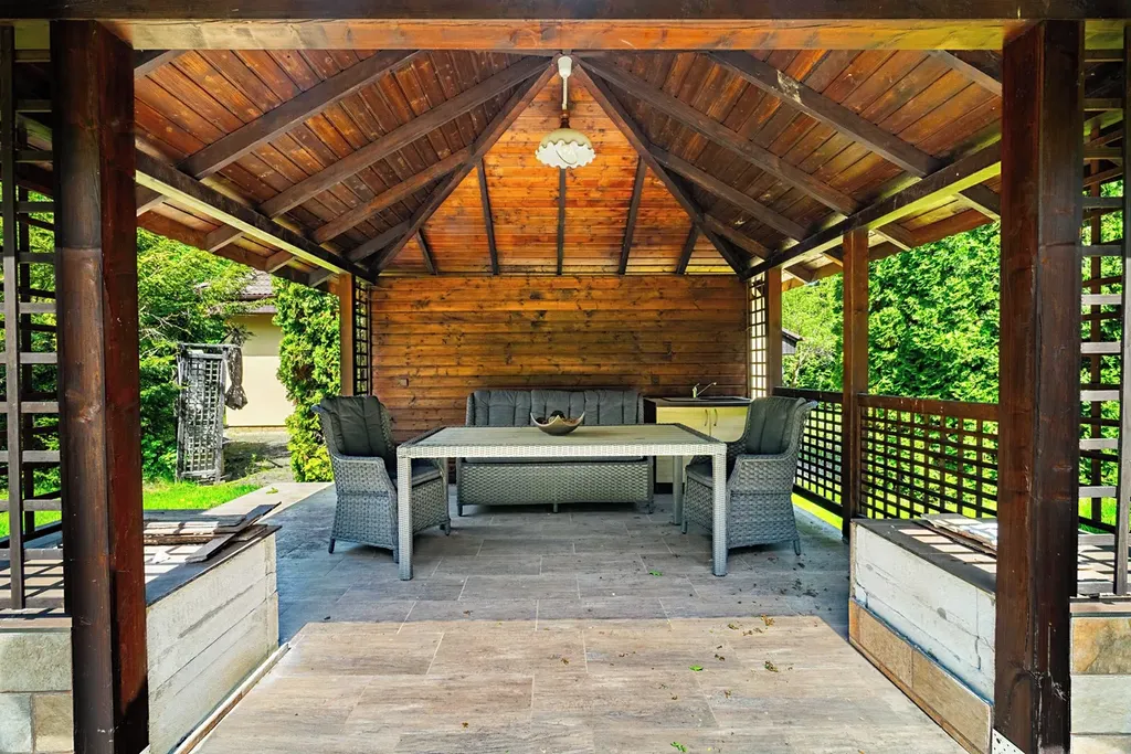 Dominantou nemovitosti je rozlehlá zahrada nabízející maximální soukromí a prostor pro volnočasové aktivity. Zastavěná plocha činí pouze 10 %, s možností rozšíření až na 30 %.