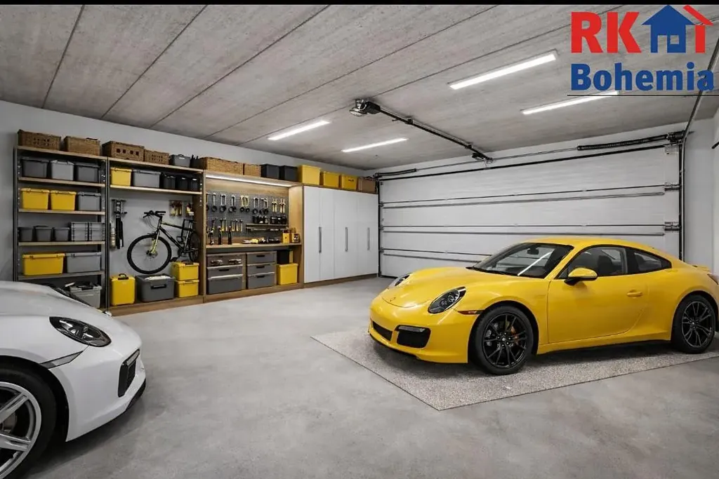 Dispozice: 1.NP - přízemí - zádveří, dvougaráž s přípravou nabíječky na elektromobily, technická místnost (vyhotoveno připojení na pračku a sušičku), skladovací místnost, pokoj pro hosty - s přípravou na wellness či saunu, úložný prostor pod schodištěm, schodiště do patra.