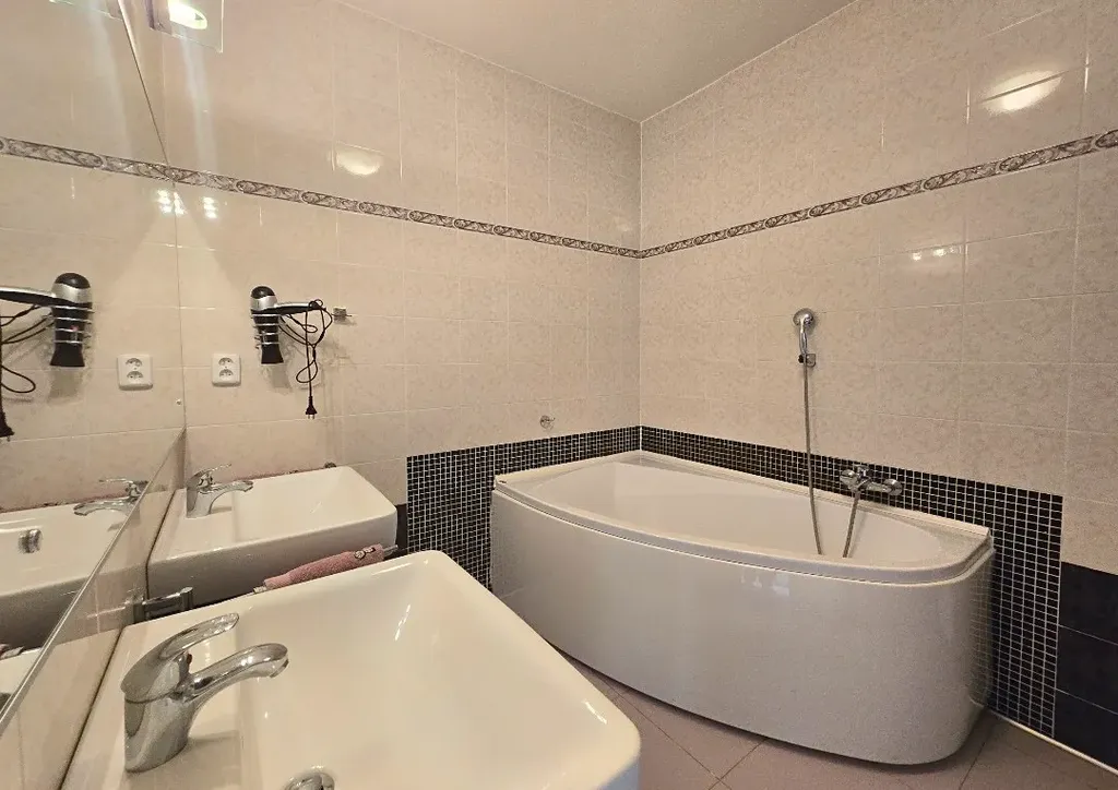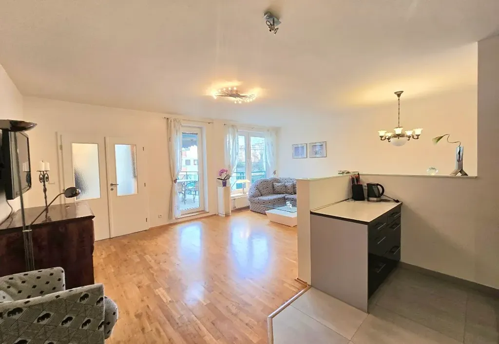 Byt nabízí velmi příjemnou atmosféru, dostatek přirozeného světla a praktické dispoziční řešení. Součástí je moderní kuchyňská linka s vestavěnými spotřebiči včetně myčky nádobí. Byt je částečně zařízen nábytkem dle fotografií, k dispozici je také pračka a prostorné vestavěné skříně, které poskytují dostatek úložného prostoru.
