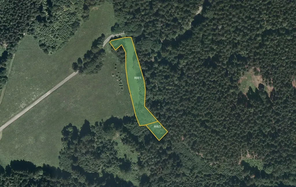 Pozemky jsou zapsány na LV 300 pod parcelními čísly 868/1, 868/2 a 1263/2. Jejich celková rozloha je 17 028 m2. Severní parcela 868/1 je trvalý travní porost o výměře 3 525 m2. Ostatní dvě parcely jsou vedeny jako orná půda.