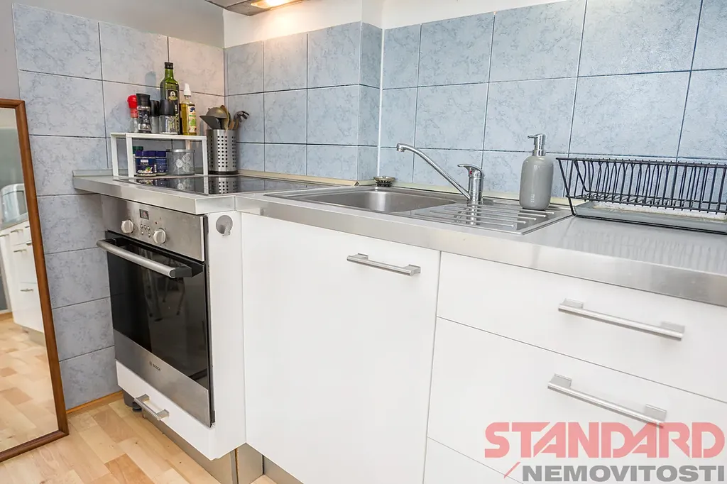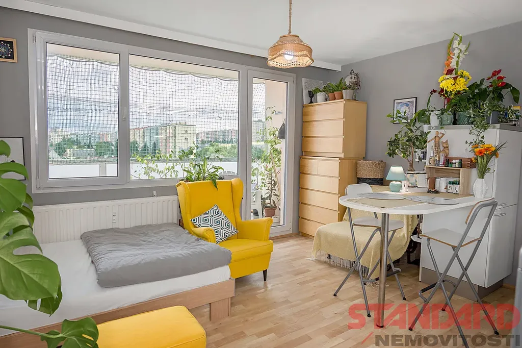 Byt prošel kompletní rekonstrukcí. Na prostornou předsíň navazuje světlý obývací pokoj s kuchyňským koutem, který zároveň slouží jako ložnice. Z pokoje je vstup na velkou lodžii s krásným výhledem. V obytné části je položena vinylová podlaha, v koupelně keramická dlažba.