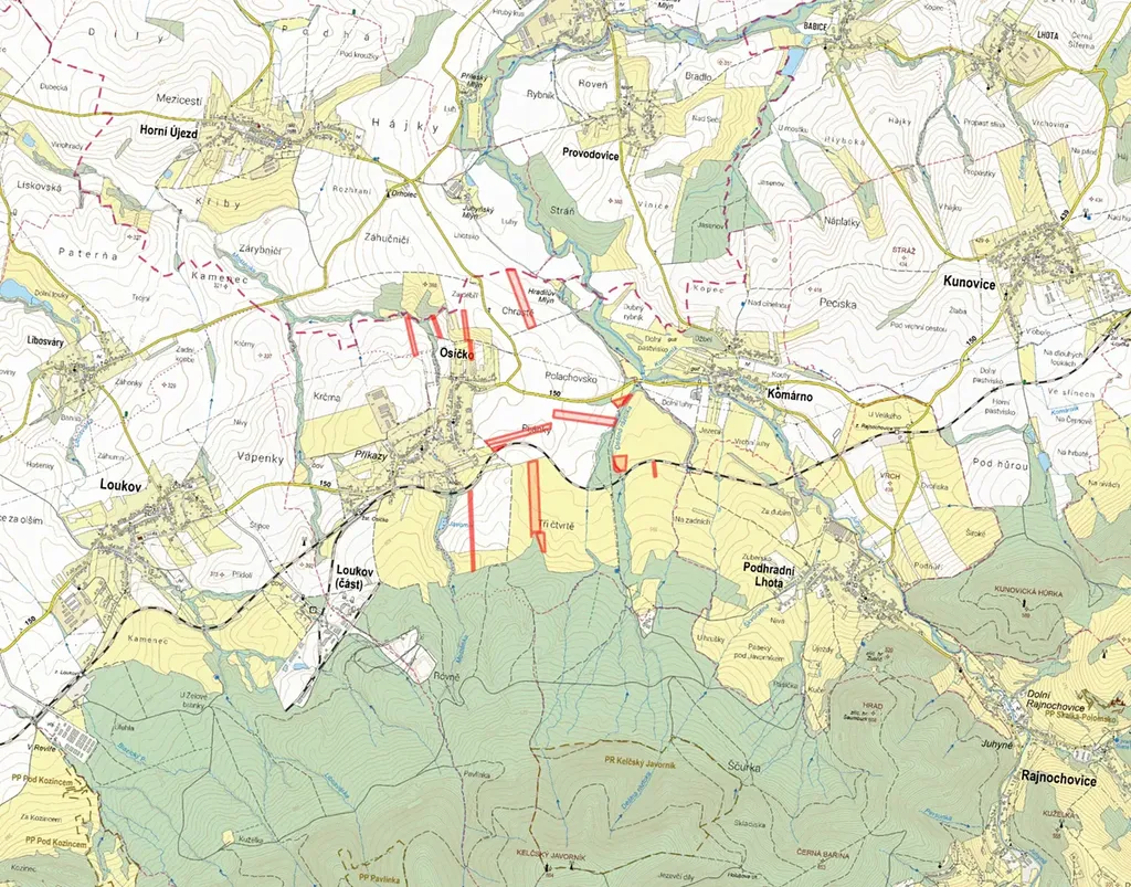 V katastrálním území Osíčko nabízím k prodeji vlastnictví na souboru zemědělských pozemků.