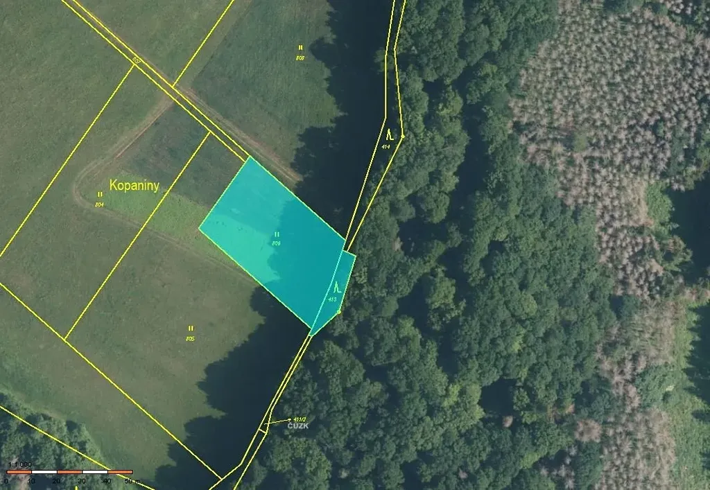 - č. 413 o velikosti 200 m2 zapsaná jako lesní pozemek přímo navazuje