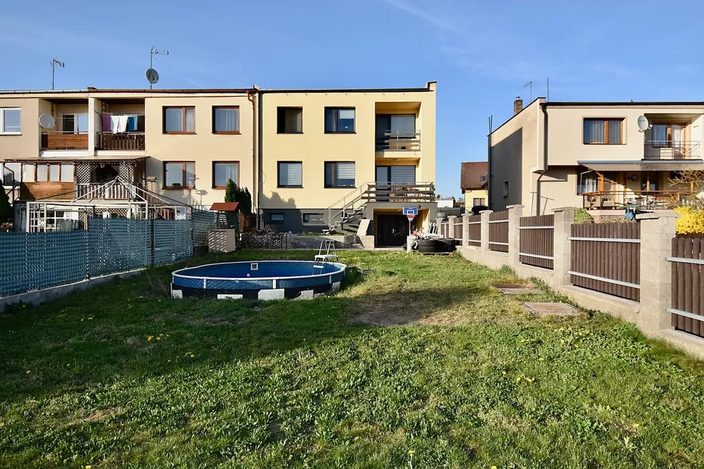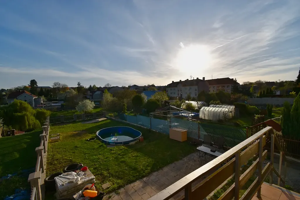 K domu náleží krásná oplocená zahrada o čisté výměře bez zastavěné plochy 253 m2, pod touto zahradou je další pozemek o výměře 193 m2, na kterém je možné postavit menší chatu či domek, který je možné pronajímat nebo využívat pro dalšího člena rodiny.