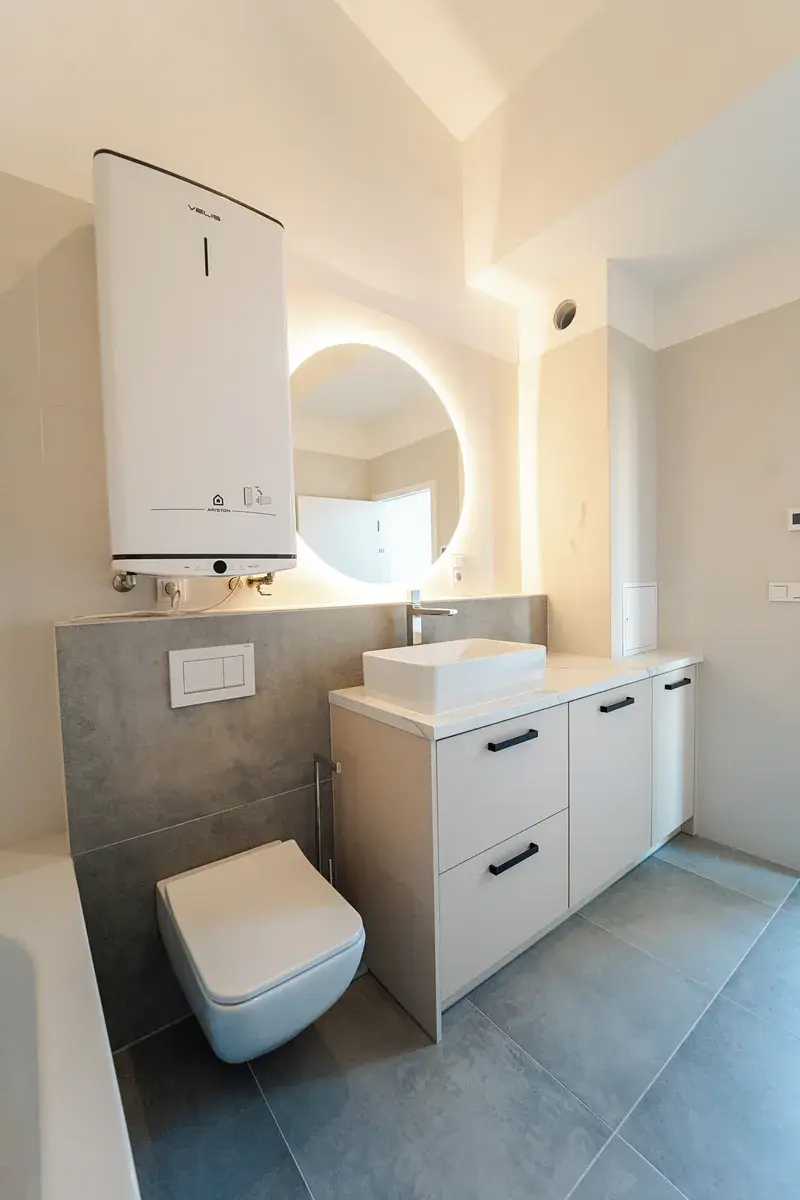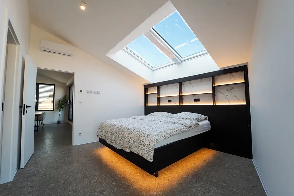 Byt zaujme nejen svým velkorysým prostorem, ale také kvalitním technickým provedením a moderním vybavením. Samozřejmostí jsou hliníková okna, elektrické podlahové vytápění, klimatizace ve 3 jednotkách a optický internet.