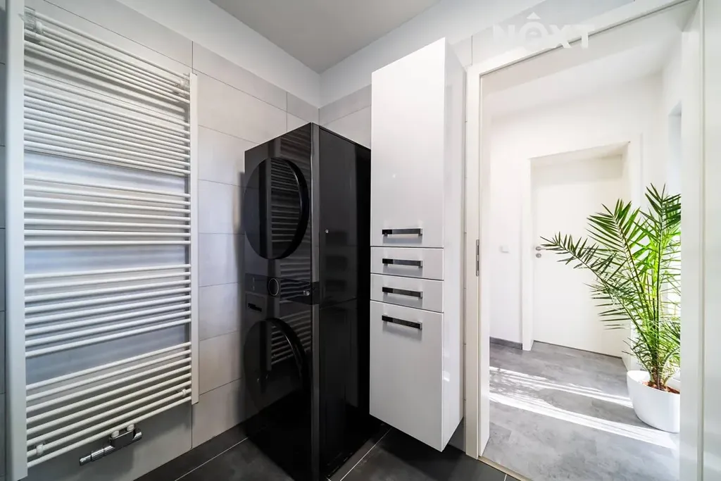 Interiér domu je zařízen v moderním stylu s důrazem na čisté linie, praktičnost a vkus. Většina nábytku byla vyrobena na míru v bílém lesku a vše zůstává součástí domu, takže novým majitelům odpadá řada starostí i dalších investic. Rekonstrukce zasáhla opravdu všechny části domu – od podlah až po střechu. Nové jsou kompletní rozvody elektřiny, vody i topení, samozřejmostí jsou také nové povrchy a kvalitní materiály.