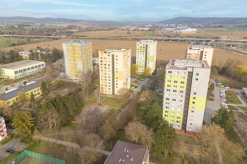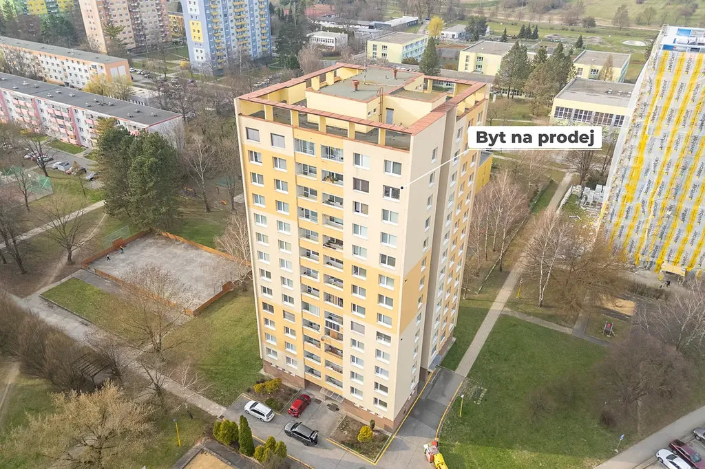 Bytová jednotka je umístěna v 12. NP panelového domu se dvěma výtahy.